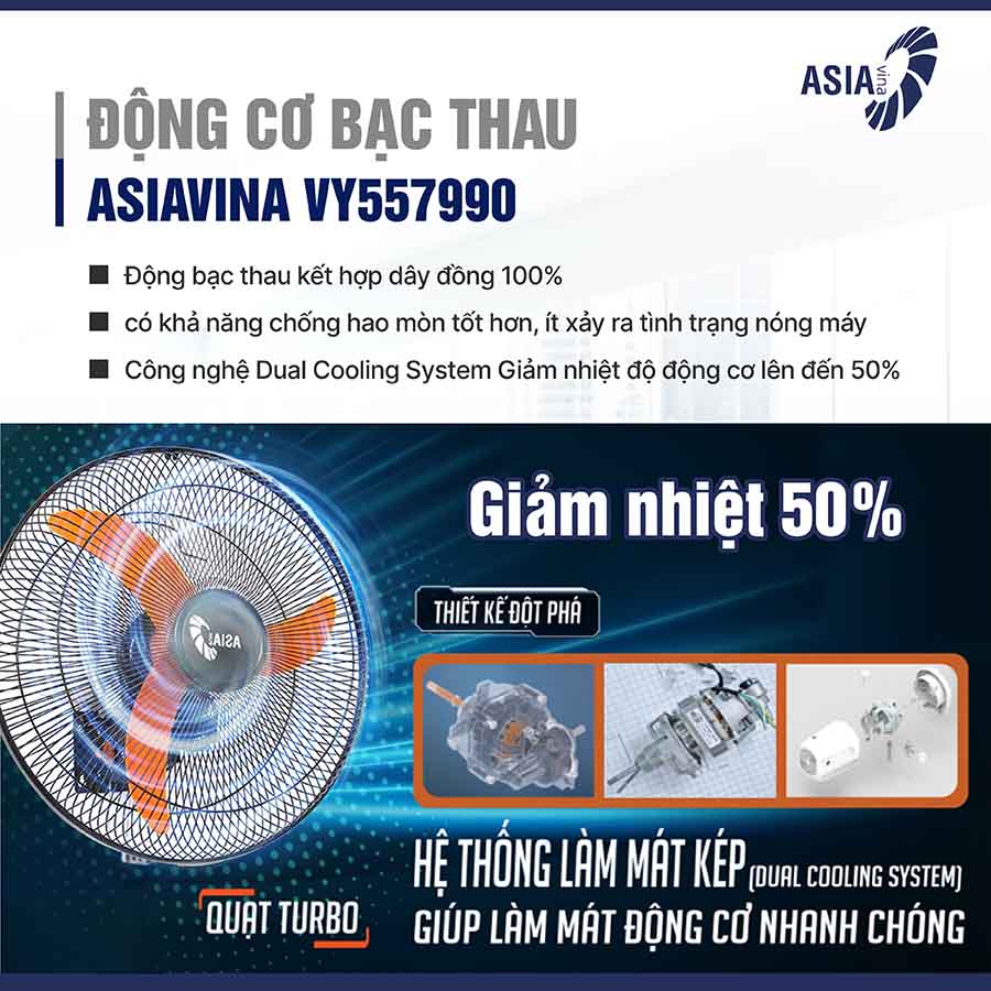 • Giảm nhiệt độ động cơ lên đến 50%: Ngăn tình trạng quá nhiệt khi quạt hoạt động trong thời gian dài.