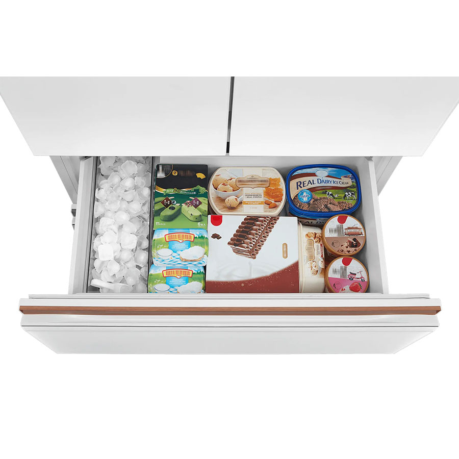 Thiết kế bên trong ngăn đá được chia thành nhiều hộc chứa riêng biệt, giúp phân loại thực phẩm một cách khoa học, hạn chế tối đa tình trạng mùi thức ăn lẫn vào nhau. Nhờ đó, việc lưu trữ trở nên hiệu quả hơn, đồng thời giữ cho thực phẩm luôn tươi ngon và an toàn cho sức khỏe.
