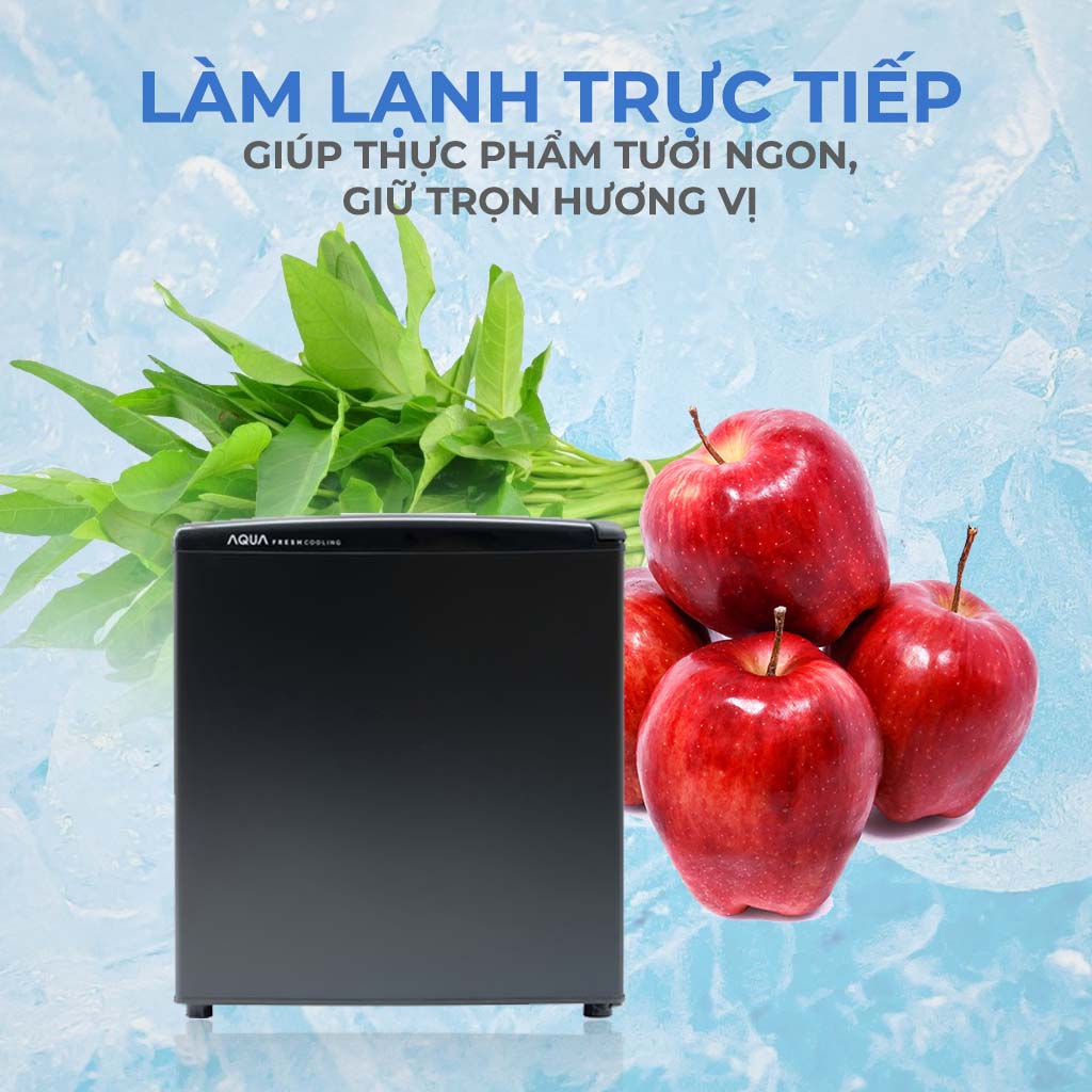 Tủ lạnh Aqua 50 lít trang bị công nghệ làm lạnh trực tiếp, giúp làm lạnh nhanh chóng, giữ cho thực phẩm tươi ngon và nguyên vị.