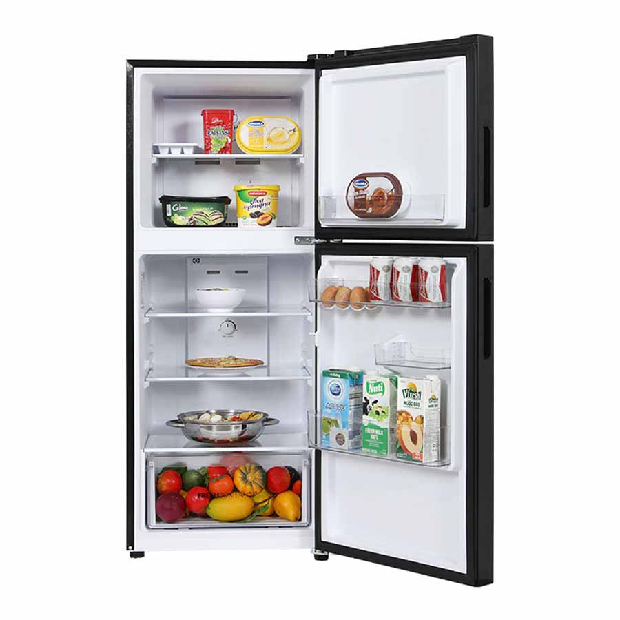 - Ngăn lạnh: Ngăn lạnh có dung tích 134 lít, gồm có kệ chia làm các ngăn và hộc đựng rau củ quả. Ngoài ra, cánh cửa tủ còn được thiết kế thêm 3 khay chứa tiện lợi cho việc đặt đồ hộp và các loại đồ uống.