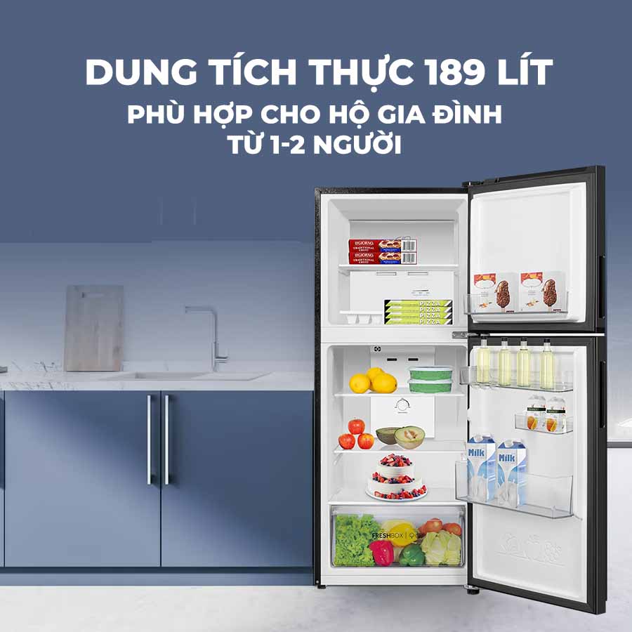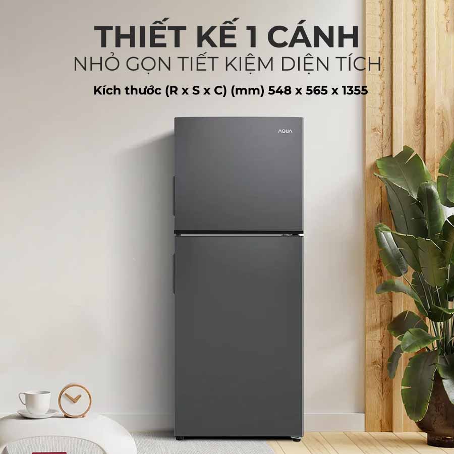 - Dung tích sử dụng của mẫu tủ lạnh Aqua này khoảng 189 lít, đáp ứng khả năng lưu trữ thực phẩm cho gia đình từ 2 – 3 người sử dụng.