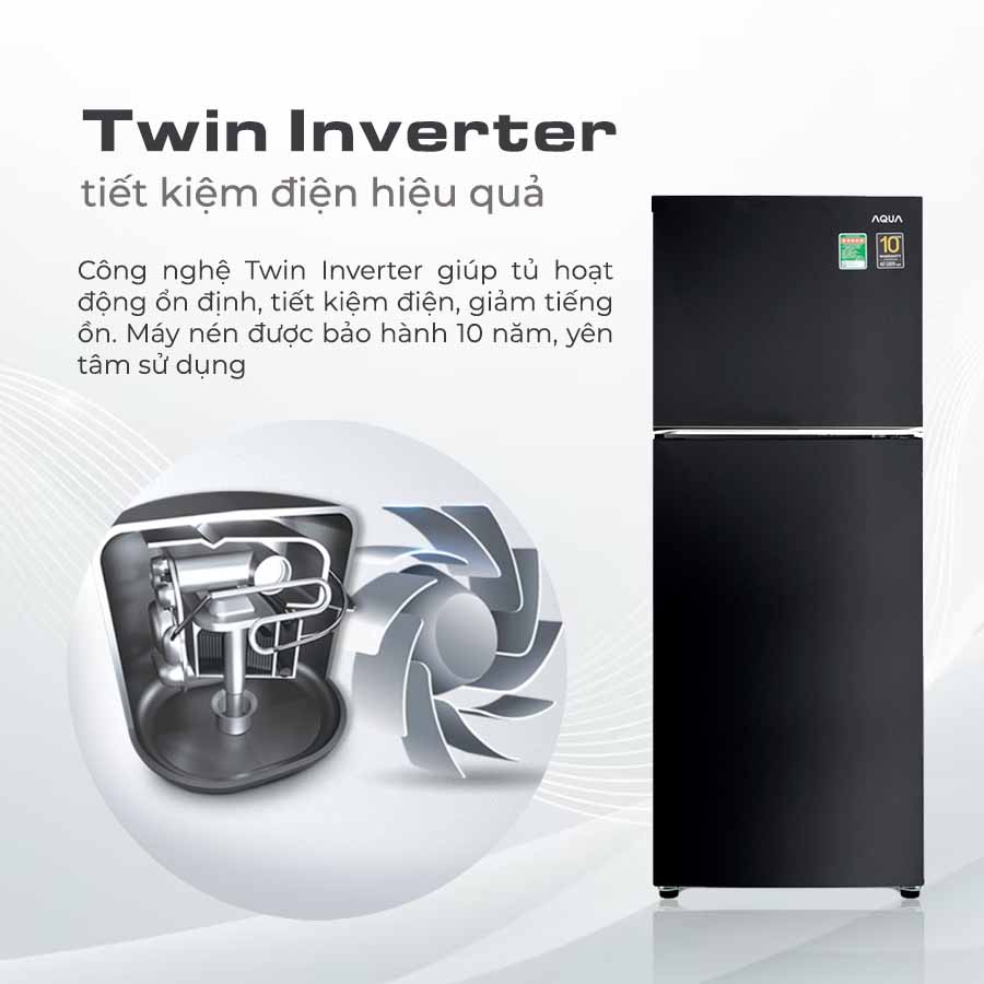 Tủ lạnh Aqua AQR-T259FA(FB) trang bị công nghệ Twin Inverter giúp tủ vận hành ổn định trong suốt quá trình hoạt động thay vì bật tắt máy nén liên tục như các tủ lạnh truyền thống. Nhờ đó, nâng cao hiệu quả tiết kiệm để bạn “nhẹ gánh” trong chi trả hóa đơn.