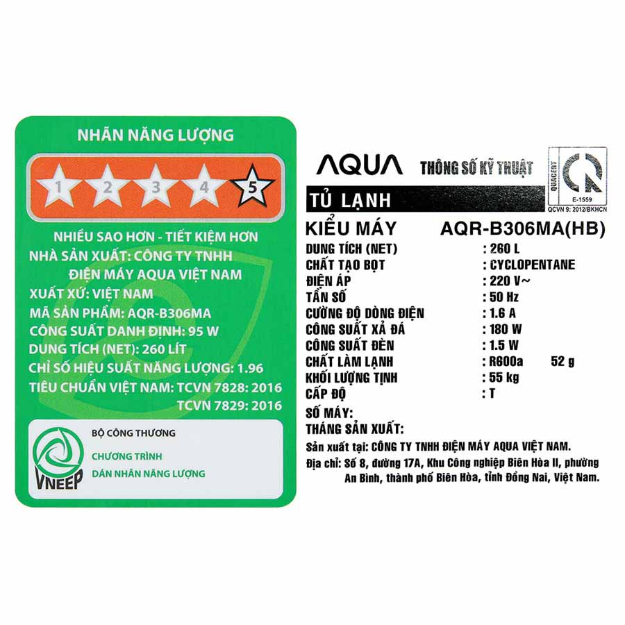 Tủ lạnh Aqua Inverter 260 lít AQR-B306MA(HB)