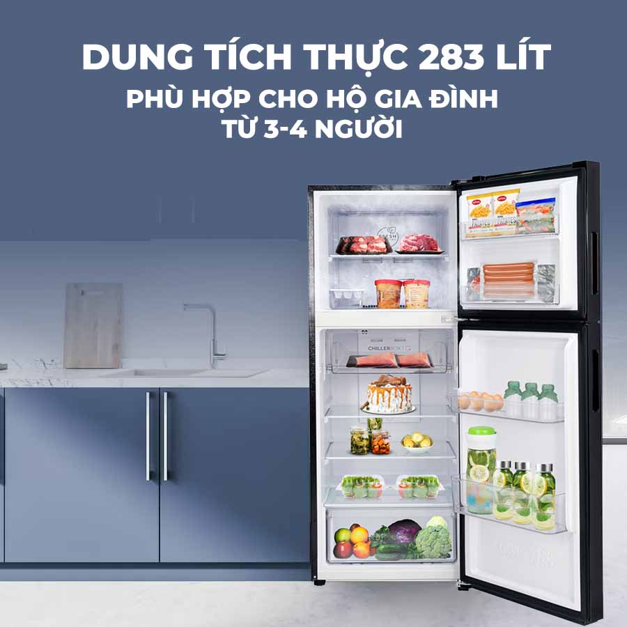 • Dung tích sử dụng: 283 lít