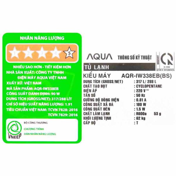 Tủ lạnh Aqua Inverter 288 lít AQR-IW338EB (BS)