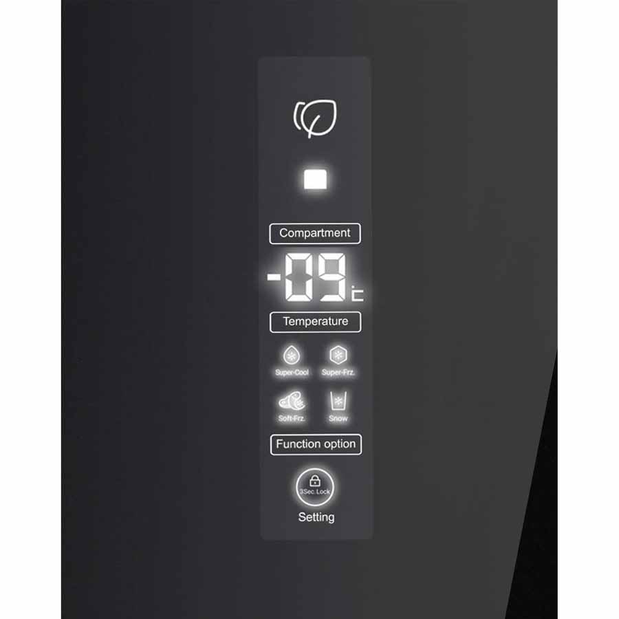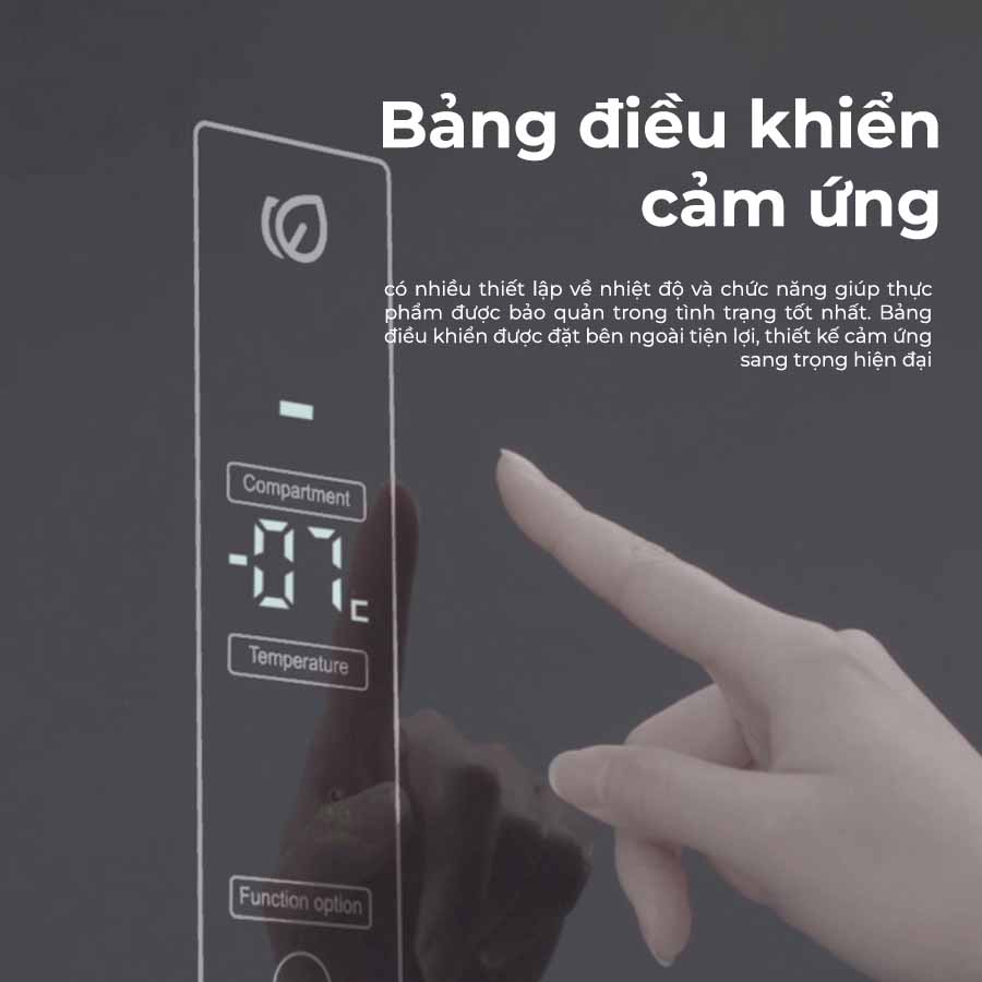 Tủ trang bị một bảng điều khiển cảm ứng  đặt bên ngoài tiện lợi và sang trọng. Đồng thời, có nhiều thiết lập về nhiệt độ và chức năng giúp thực phẩm được bảo quản trong tình trạng tốt nhất.