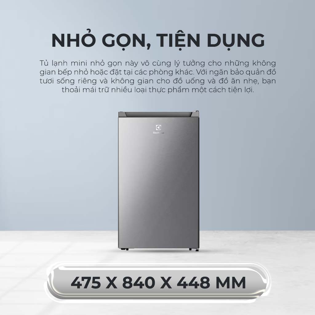 Tủ lạnh Electrolux 94 lít EUM0930AD-VN với thiết kế nhỏ gọn, sang trọng và tính năng làm lạnh hiệu quả, sản phẩm này đáp ứng tối đa nhu cầu bảo quản thực phẩm cho các gia đình từ 1-2 người. Được trang bị công nghệ làm lạnh trực tiếp và các tính năng tiện ích như khay kệ linh hoạt, ngăn CoolZone, cùng núm vặn điều chỉnh nhiệt độ, tủ lạnh này không chỉ giúp bạn bảo quản thực phẩm tươi ngon lâu hơn mà còn tiết kiệm không gian và điện năng.