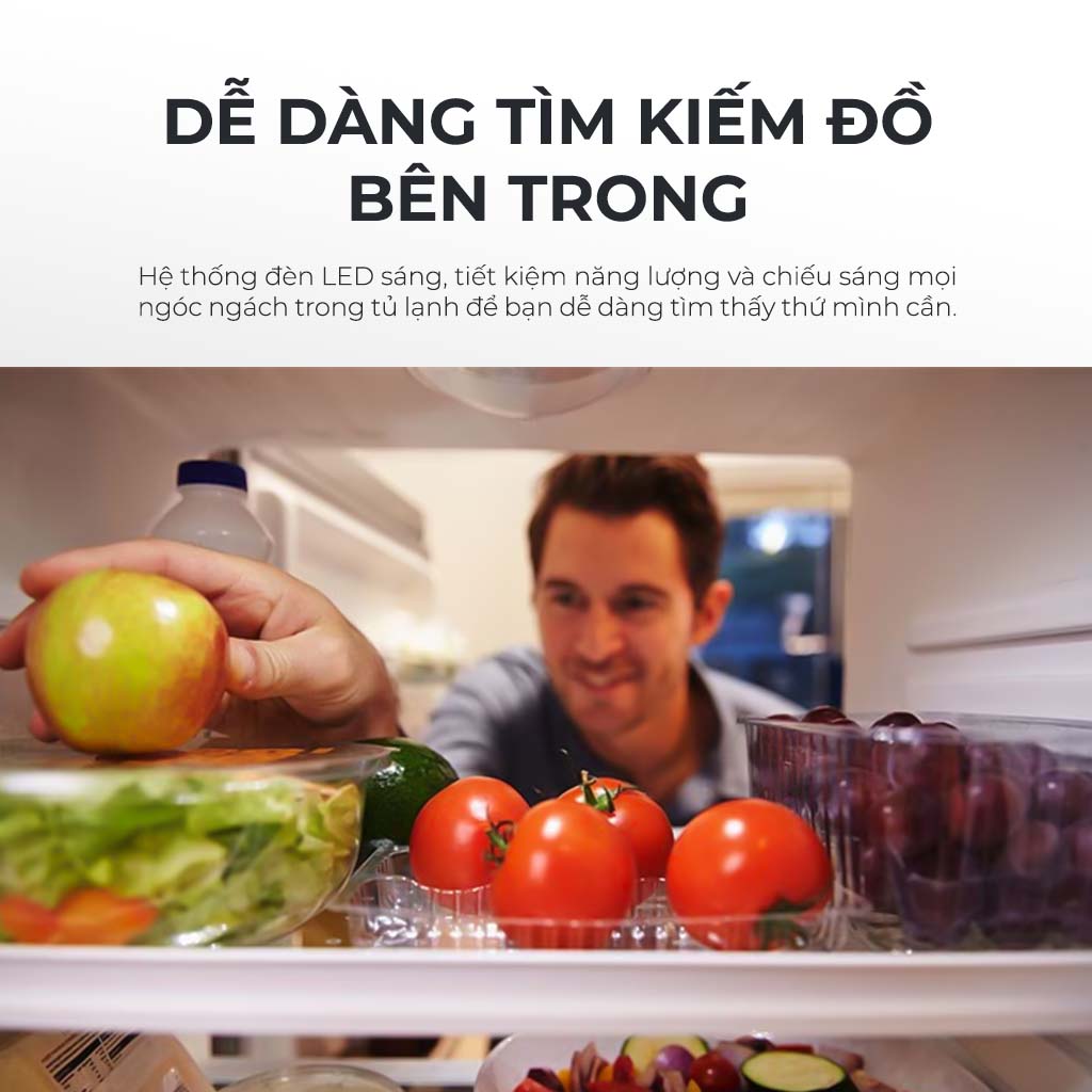 Ngoài ra, với tuổi thọ cao và tiêu thụ ít điện, đèn LED góp phần duy trì hiệu quả năng lượng tổng thể của tủ lạnh, đồng thời giảm thiểu chi phí điện năng trong quá trình sử dụng lâu dài.