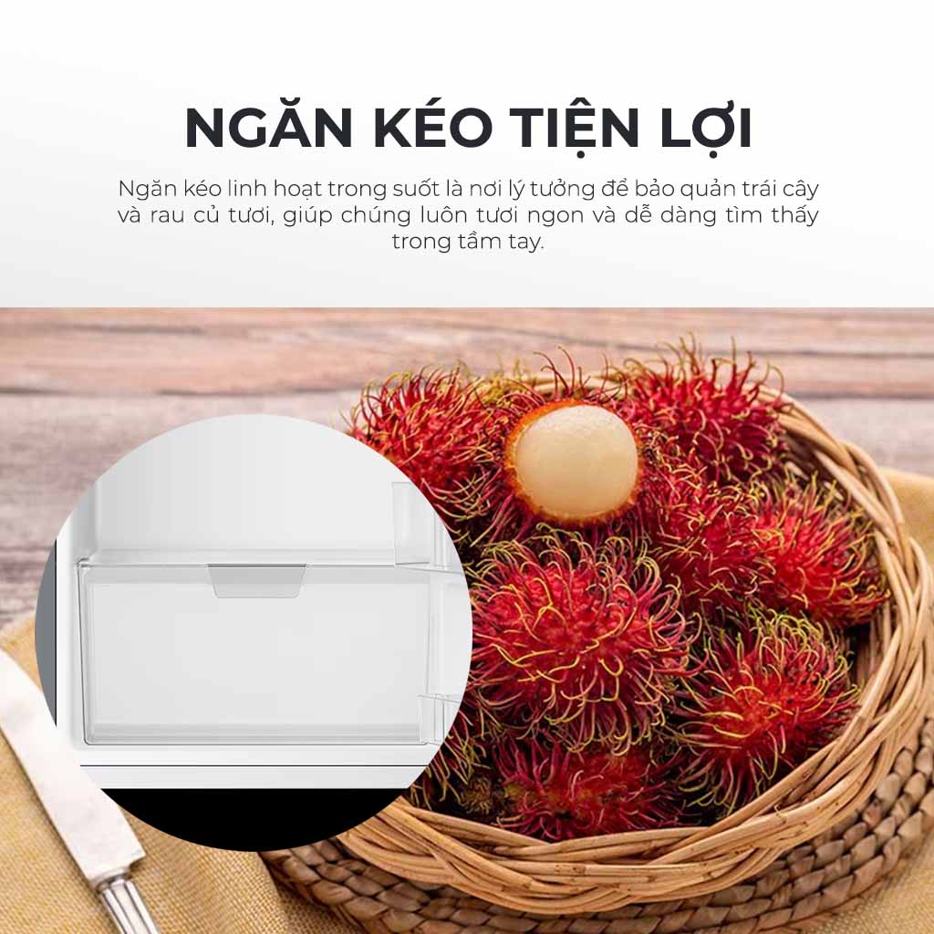Nhờ vào ngăn đựng dạng kéo này, rau củ và trái cây được bảo quản tốt hơn, giữ được độ tươi ngon lâu dài mà không bị héo hay mất chất dinh dưỡng. Đặc biệt, ngăn kéo dễ dàng tháo lắp, thuận tiện cho việc vệ sinh, giúp tủ lạnh luôn sạch sẽ và bảo vệ sức khỏe gia đình bạn.
