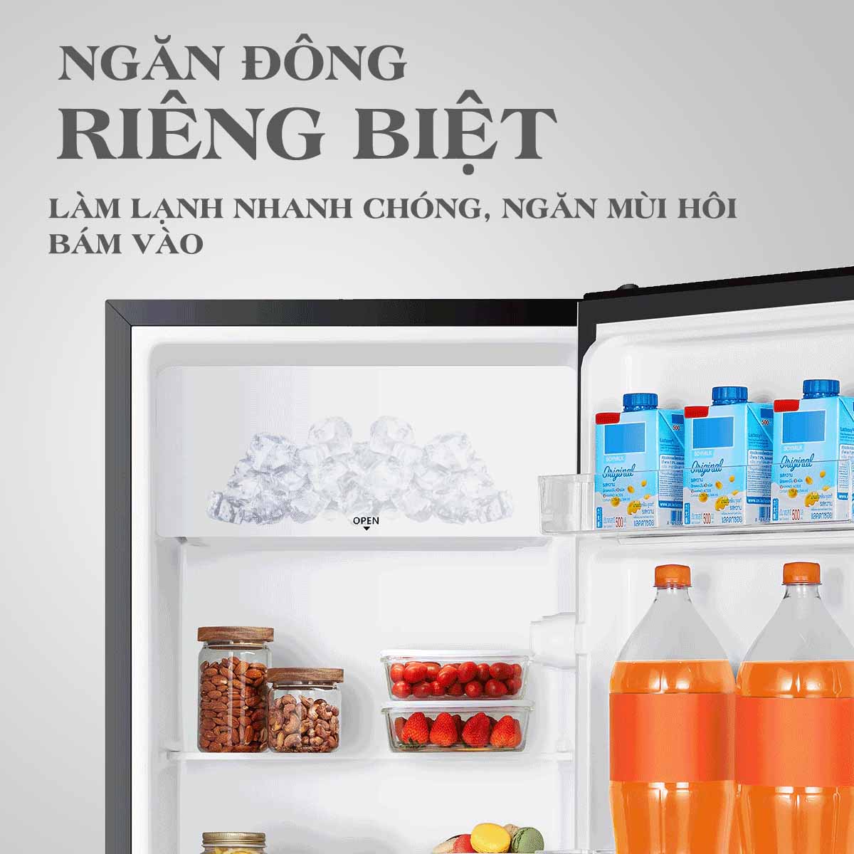 Nhờ kích thước nhỏ gọn và dung tích vừa phải, tủ không chỉ giúp tiết kiệm diện tích đặt để, mà còn tiết kiệm điện năng tiêu thụ, mang lại sự tiện lợi và kinh tế cho người dùng trong sinh hoạt hàng ngày.