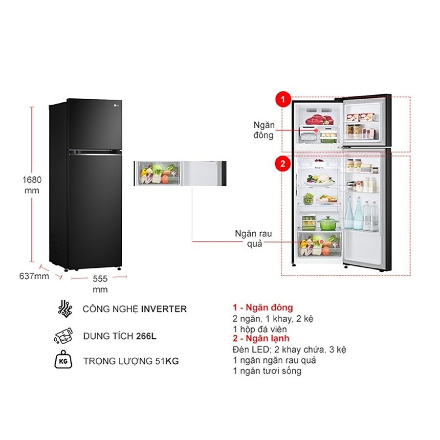 Tủ lạnh LG Inverter 266 lít LTB26BLM: Giữ trọn độ tươi ngon thực phẩm