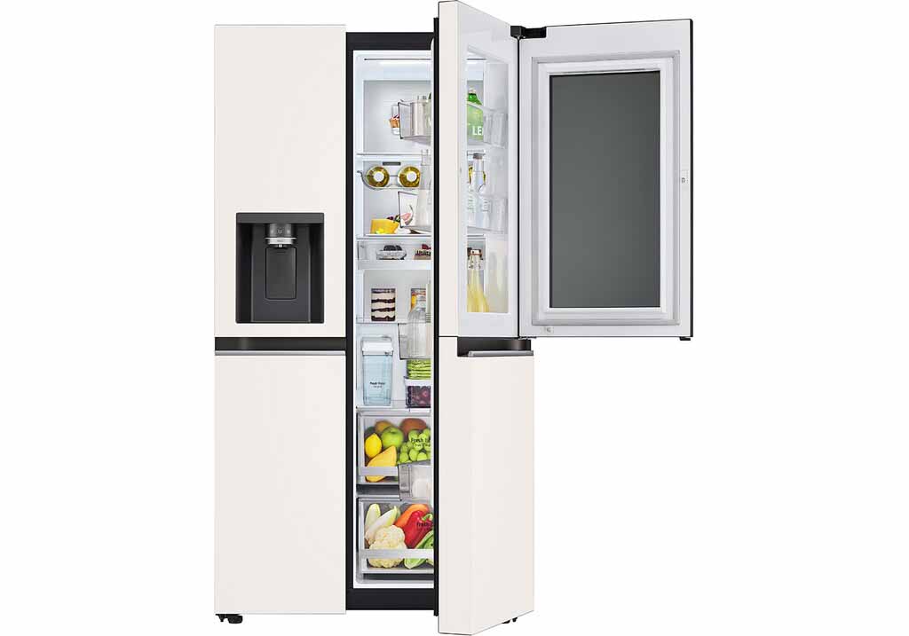 Một điểm nhấn đáng giá trên sản phẩm là cửa phụ InstaView Door-in-Door, được tích hợp mặt kính lớn hơn 25% so với thế hệ trước. Chỉ với hai lần gõ nhẹ, người dùng có thể quan sát thực phẩm bên trong mà không cần mở cửa chính, giúp giảm thiểu lên đến 41% lượng khí lạnh bị thất thoát. Điều này không chỉ giúp tiết kiệm điện năng mà còn góp phần duy trì độ tươi của thực phẩm nhờ nhiệt độ trong tủ luôn được ổn định. Thiết kế này cũng rất phù hợp cho các loại thực phẩm thường dùng, giúp dễ lấy hơn và hạn chế việc mở tủ quá lâu.