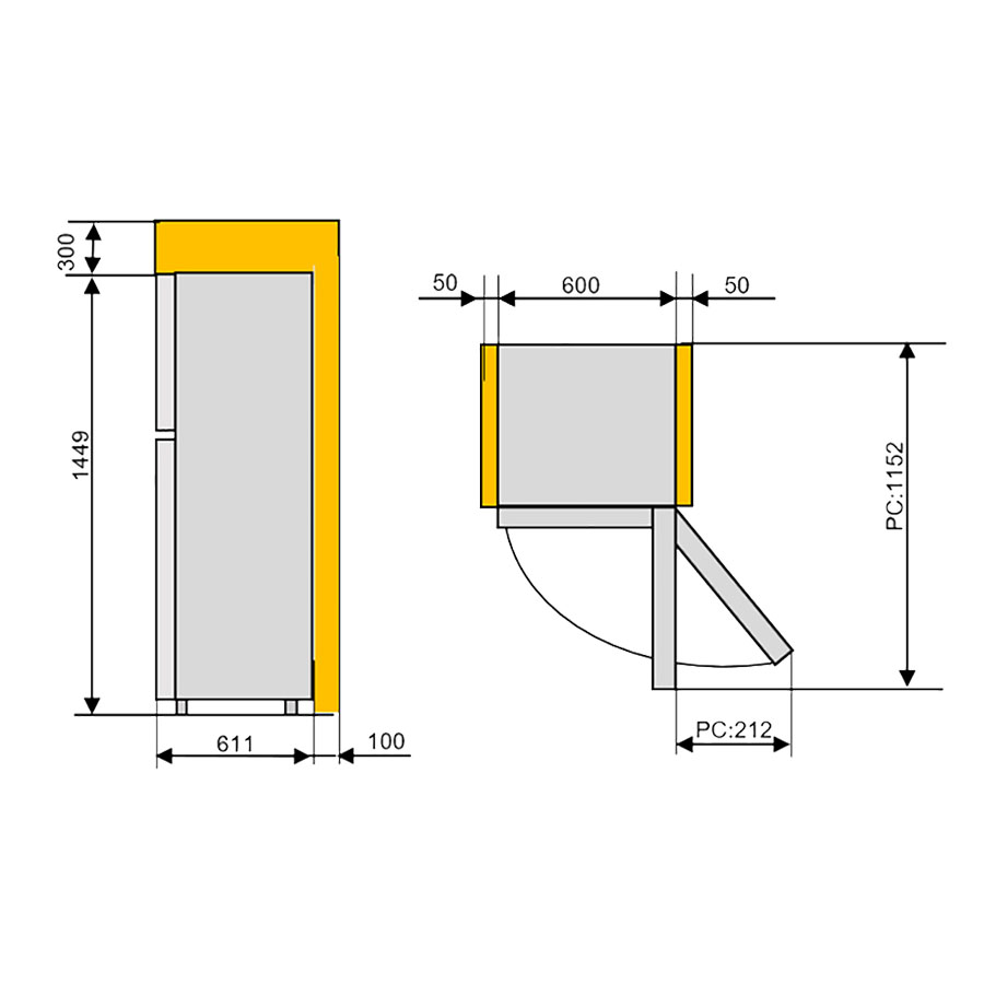 • Kích thước sản phẩm: 1449 x 600 x 611 mm