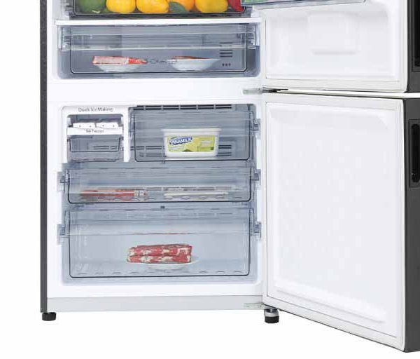 Ngoài ra, tủ lạnh còn có thiết kế ngăn đá dưới, mang đến sự tiện lợi vượt trội. Thiết kế này giúp người dùng có thể dễ dàng lấy thực phẩm từ ngăn mát mà không phải cúi xuống, giúp giảm thiểu sự mệt mỏi và các vấn đề về sức khỏe do việc cúi người quá nhiều. Đây là một tính năng rất hữu ích, đặc biệt đối với những người có vấn đề về lưng hoặc những gia đình có người cao tuổi. Tủ lạnh Panasonic không chỉ chú trọng vào hiệu suất làm lạnh mà còn đem lại sự tiện nghi, thoải mái cho người sử dụng.
