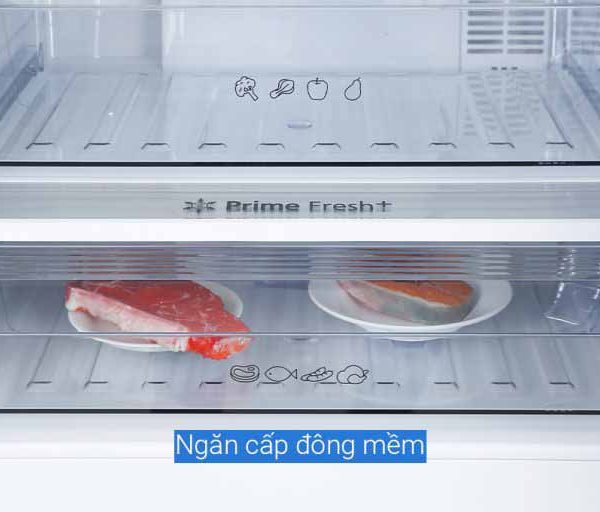Ngăn đông mềm Prime Fresh+ bảo quản thực phẩm ở mức nhiệt độ -3°C, tạo ra một lớp đông nhẹ bao quanh bề mặt thực phẩm mà không làm đóng băng hoàn toàn. Điều này mang lại nhiều lợi ích: