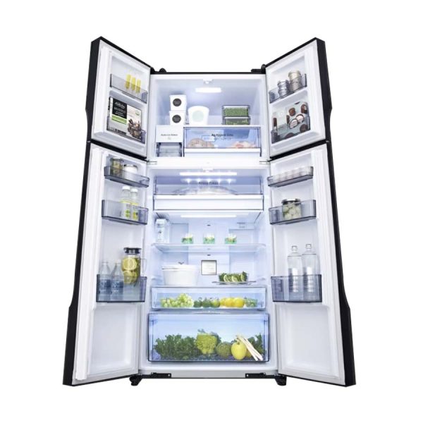 • Thiết kế 4 cánh cửa: Thiết kế 4 cánh không chỉ tạo nên diện mạo bề thế mà còn tối ưu hoá khả năng lưu trữ và sắp xếp thực phẩm. Cách bố trí này cho phép người dùng dễ dàng phân chia khu vực bảo quản thực phẩm tươi sống, đồ đông lạnh và các loại thực phẩm khác mà không cần phải xáo trộn nhiều. Hơn nữa, việc mở từng cánh riêng lẻ cũng giúp tiết kiệm điện năng, giữ nhiệt tốt hơn khi chỉ mở một phần tủ thay vì toàn bộ.