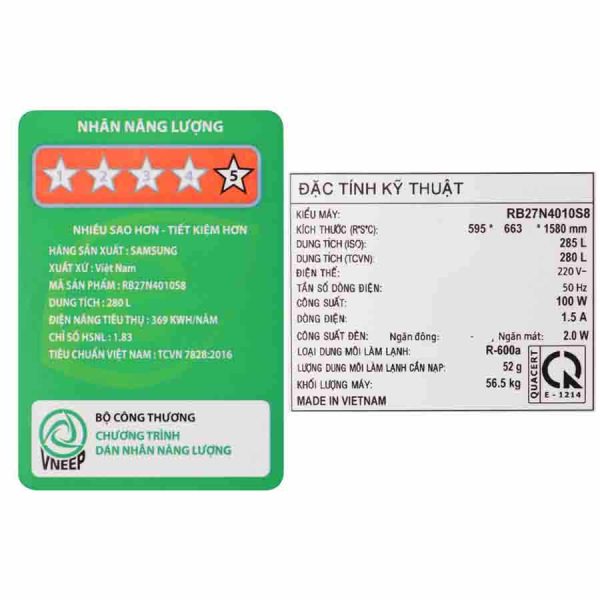 Tủ lạnh Samsung Inverter 280 lít RB27N4010S8/SV