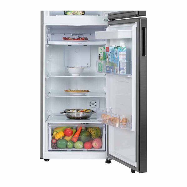 Ngăn lạnh có dung tích 265 lít, được trang bị hệ thống khay kệ phân chia tầng thông minh, giúp người dùng sắp xếp và phân loại thực phẩm một cách gọn gàng, khoa học. Ngăn còn bao gồm ngăn rau củ giữ ẩm hiệu quả, giúp rau củ và trái cây luôn tươi ngon, mọng nước, kéo dài thời gian bảo quản và giữ trọn dưỡng chất.