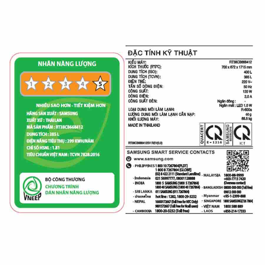 Tủ lạnh Samsung Inverter 385 lít Bespoke RT38CB668412SV