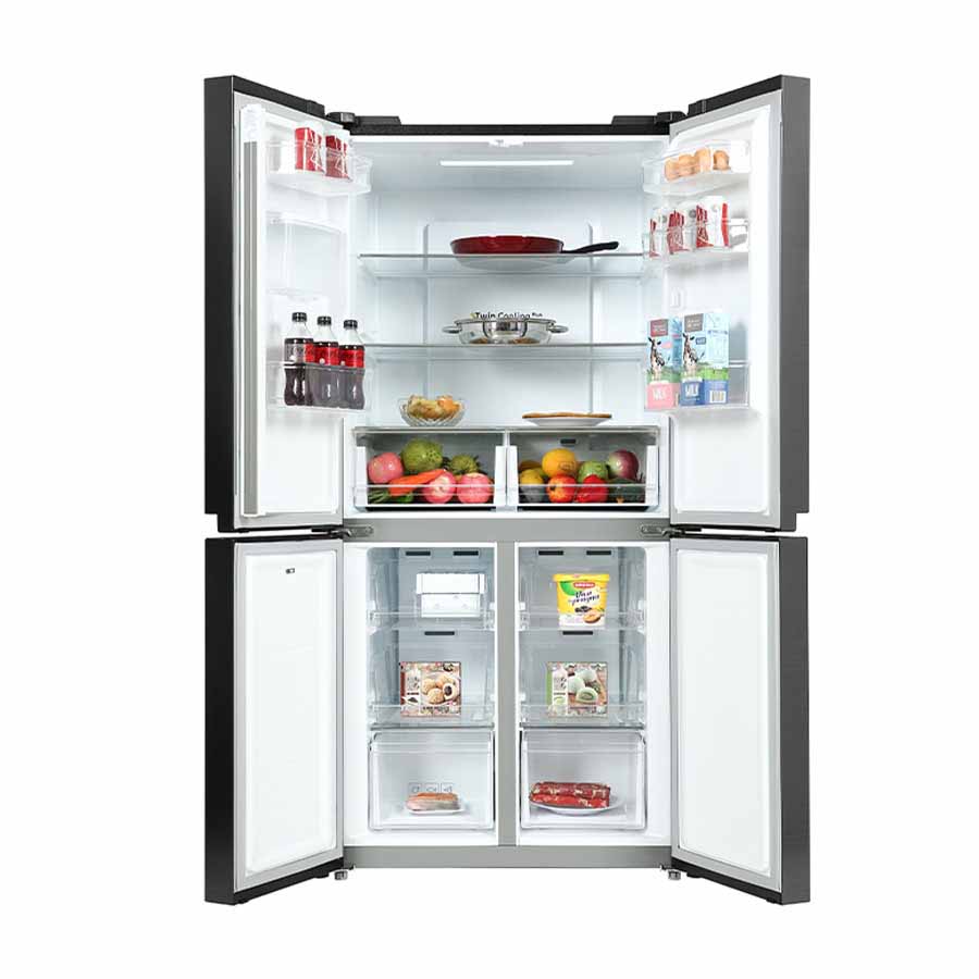 Tủ lạnh được thiết kế với 4 cánh tủ mở độc lập theo kiểu cửa Pháp (French Door), vừa hiện đại vừa tối ưu cho nhu cầu sử dụng. Các ngăn tủ riêng biệt cho phép người dùng dễ dàng mở từng khoang khi cần, giúp hạn chế thất thoát hơi lạnh và tiết kiệm điện năng.