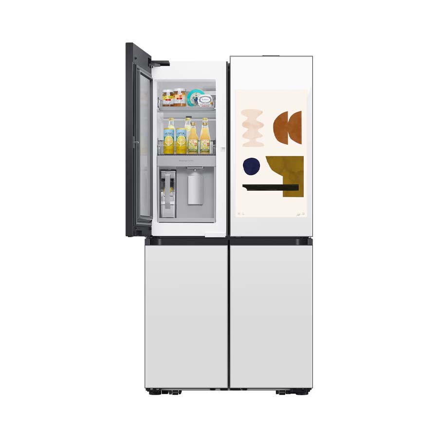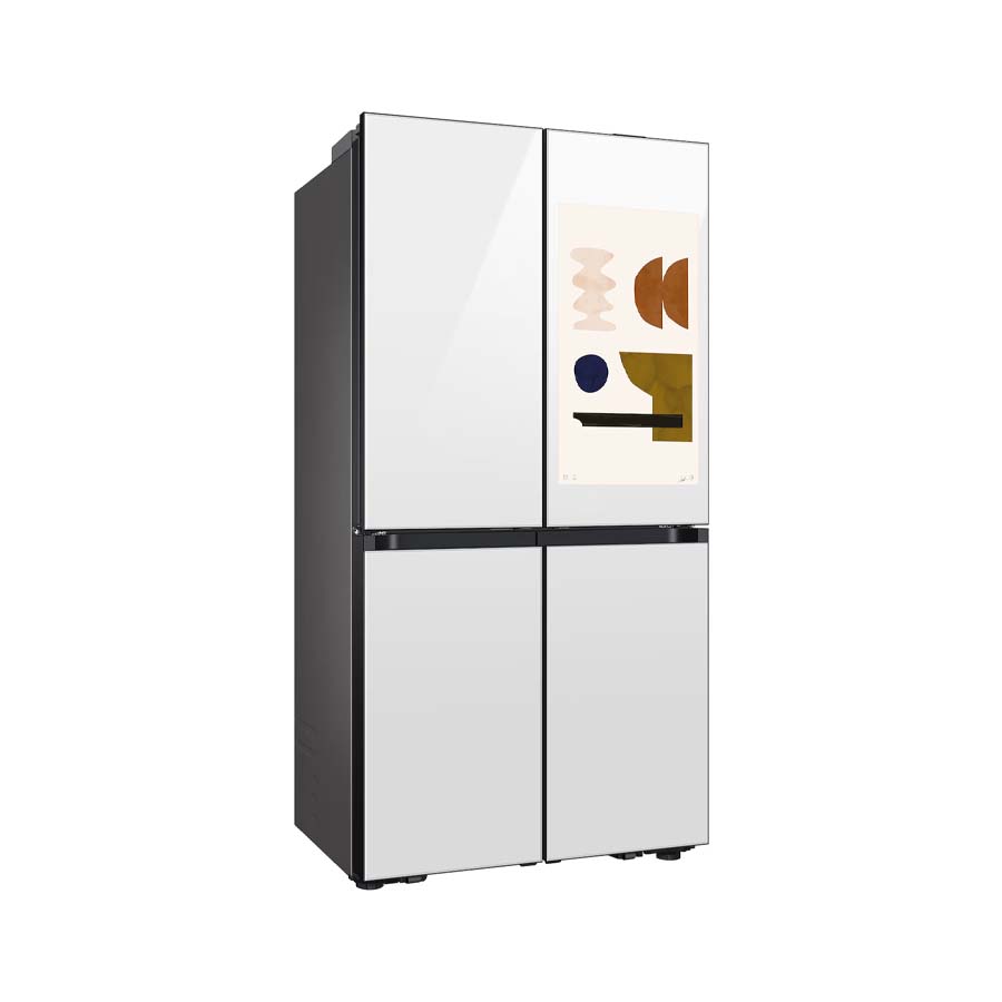 Tủ lạnh Samsung Inverter 636 lít Multi Door Bespoke RF65DB990012SV là sản phẩm thuộc dòng cao cấp Bespoke, nổi bật với thiết kế 4 cánh hiện đại, tinh tế. Cửa tủ làm bằng mặt gương soi bóng bẩy, mang đến vẻ sang trọng và đẳng cấp cho không gian bếp của bạn. Gam màu trắng thạch anh nhẹ nhàng, thanh lịch, góp phần làm tăng tính hài hòa và hiện đại cho tổng thể thiết kế. Các chi tiết như tay cầm và bảng điều khiển được bố trí ẩn khéo léo, giúp tạo nên sự liền mạch và tinh tế, đồng thời tăng tính tiện dụng cho người dùng.