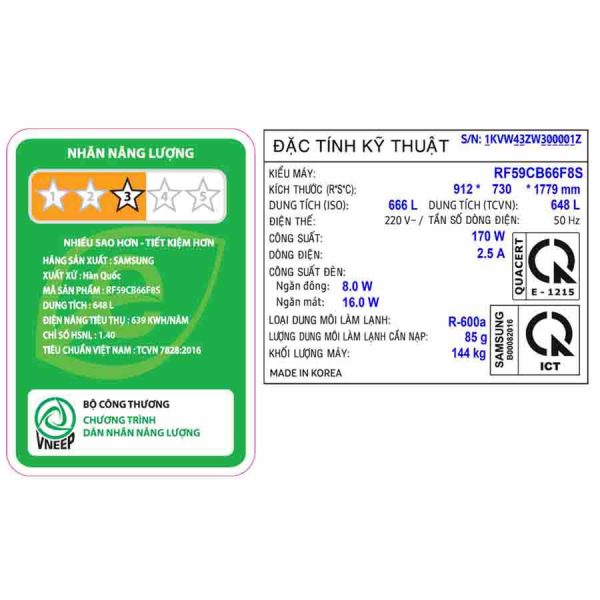 - Công suất tủ lạnh: ~ 1.78 kW/ngày