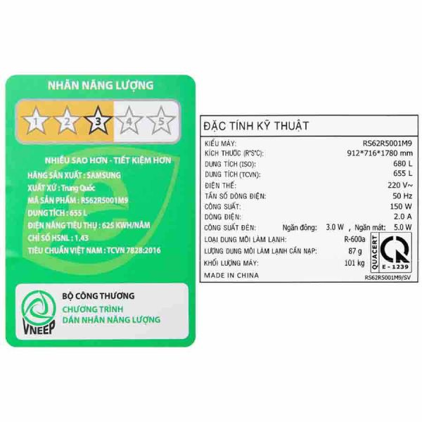 Tủ lạnh Samsung Inverter 655 lít RS62R5001M9/SV
