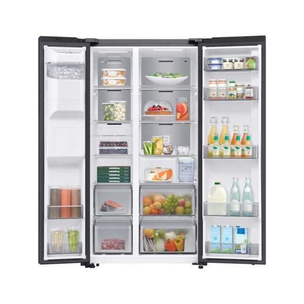 Về dung tích, Samsung RS80F65J2BSV sở hữu tổng thể lên đến 634 lít, trong đó ngăn lạnh chiếm 416 lít và ngăn đá 218 lít. Thiết kế hai cánh mở rộng không chỉ tối ưu hóa khả năng lưu trữ mà còn giúp việc sắp xếp và lấy thực phẩm trở nên dễ dàng, nhanh chóng hơn bao giờ hết.