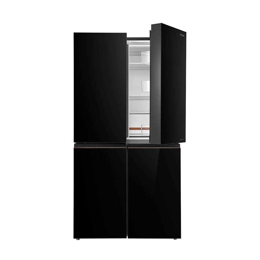 Tủ lạnh Toshiba Inverter 711 lít Multi Door GR-RF895WIA-PGV(22)-XK gây ấn tượng mạnh với thiết kế Sturdy-Lux hiện đại, sang trọng và đầy cá tính. Toàn bộ mặt trước của tủ được phủ kính cường lực màu đen Midnight bóng bẩy, tạo hiệu ứng phản chiếu như một chiếc gương soi toàn thân, vừa tăng tính thẩm mỹ vừa mở rộng cảm giác không gian. Bề mặt kính này không chỉ đẹp mắt mà còn chịu lực tốt, hạn chế trầy xước và dễ lau chùi, mang đến sự tiện lợi trong quá trình sử dụng hàng ngày.